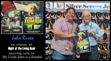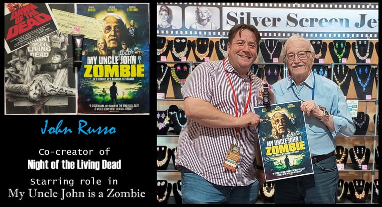 John Russo, co-creator of Night of the Living Dead, The Return of the Living Dead, and star of My Uncle John is a Zombie, stopped by on October 18th at Sci-Fi Valley Con, and even brought us some film props and signed posters! This was our third time visiting with John, and it's always a blast. What a great guy!